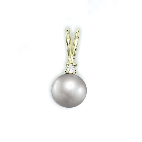 Luxusní zlatý přívěsek zdobený briliantem a přírodní kulatou perlou šedou o rozměru 7,5 mm. Diamant má průměr 1,9 mm kvalita Si/G ,karátová váha je 0,027ct. Celková výška přívěsku je 18 mm. Šperk je vyhotoven ze žlutého zlata ryzosti 585/1000, orientační hmotnost 1,5g .