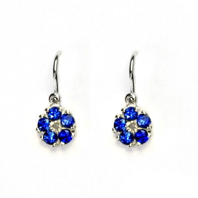 Dětské náušnice z bílého zlata mají tvar kytičky a jsou zdobeny zirkony v barvě spinelu. Materiál je zlato 585/1000. Průměr kytičky je 6 mm. Náušnice mají dětské zapínání. Celková výška náušnice je 15 mm. Orientační váha 1,2g.