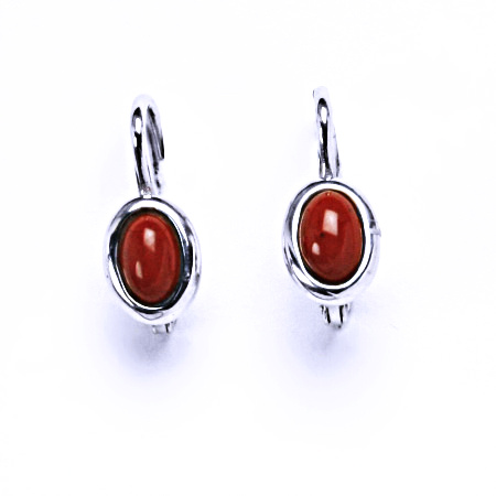 Náušnice z bílého zlata na klasické patentové zapínání zdobí přírodní kámen Jaspis .