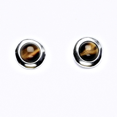 Náušnice z bílého zlata na šroubkové zapínání zdobí přírodní kámen Tygří oko .