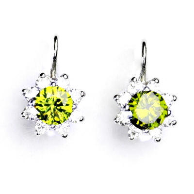 Zlaté náušnice, čiré zirkony a syntetickým olivínem, bílé zlato, VE 61