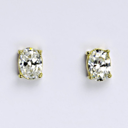 Zlaté náušnice ze žlutého zlata 14 karátů s čirým zirkonem. Velikost kamene je 7 x 5 mm. Náušnice mají zapínání na šroubek. Orientační váha náušnic je 1,74 g.