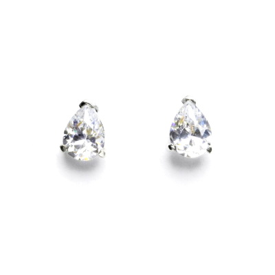 Zlaté náušnice zdobené čirými zirkony ve tvaru slzy, rozměr kamene 8 x 6 mm. Náušnice disponují bezpečným zapínáním na šroubek, což eliminuje riziko ztráty. Orientační hmotnost šperku je 2,36 g, vyhotoveno z bílého zlata ryzosti 585/1000.