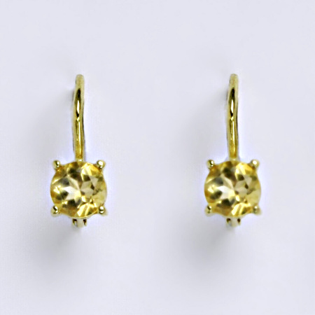 Zlaté náušnice na klasické patentové zapínání s přírodním citrínem.