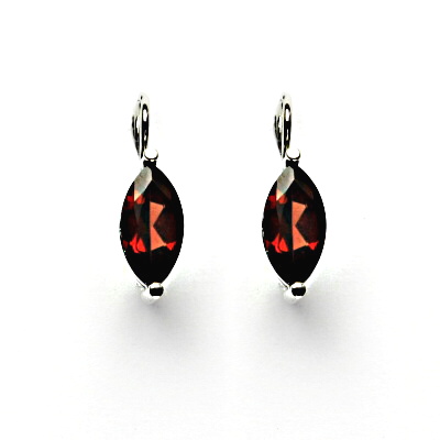Zlaté náušnice zdobené přírodními granáty velikosti 12x6 mm, zapínání na klasický patent. Celková výška náušnice je 20 mm, šířka 6 mm. Orientační hmotnost 2,54 g. Šperk je vyhotoven z bílého zlata ryzosti 585/1000.