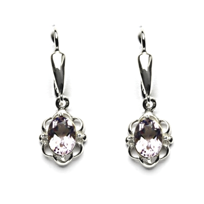 Zlaté náušnice s přírodním kamenem světlý ametyst velikosti 8x6 mm. Náušnice se zapínají na klasický patent, jejich celková výška je 30 mm, rozměry zdobné části 11x5 mm. Orientační hmotnost šperku 3,56 g. Náušnice jsou vyhotoveny z bílého zlata ryzosti 585/1000.