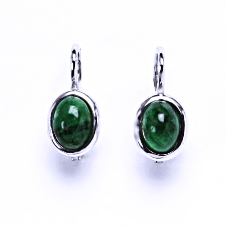 Náušnice z bílého zlata na klasické patentové zapínání zdobí přírodní kámen Smaragd .