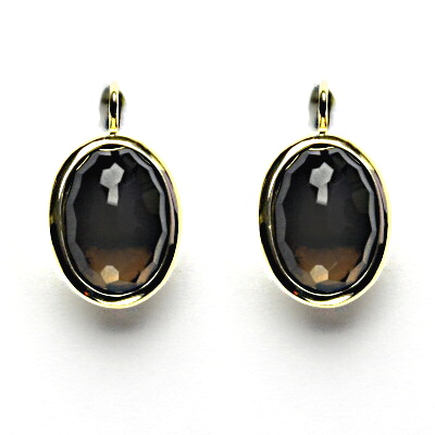 Zlaté náušnice s přírodními kameny záhněda - brus šachovnice, zapínání na klasický patent. Kameny měří 14x10 mm, celková výška náušnic je 23 mm, šířka zdobné části 13 mm. Orientační hmotnost 5,3g a více. Vyhotoveno ze žlutého zlata ryzosti 585/1000.