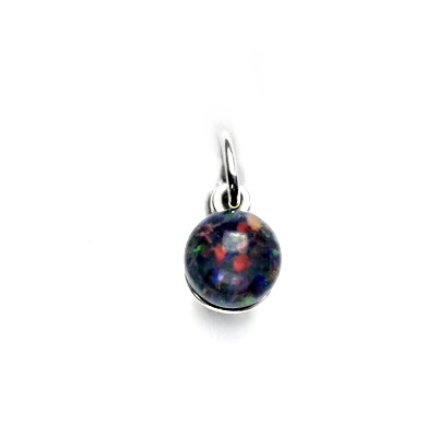 Zlatý přívěsek se syntetickým opálem černé barvy. Průměr opálové kuličky je 6 mm, celková výška přívěsku 13 mm. Šperk je vyroben z bílého zlata 585/1000 (14 kt), orientační hmotnost 0,47 g.
