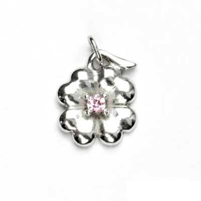 Zlatý přívěsek, růžový zirkon, čtyřlístek, bílé zlato, P 219