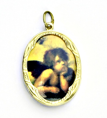 Zlatý přívěsek, žluté zlato,porcelánová Madonka Andílek, andělíček, (A-1), P 158