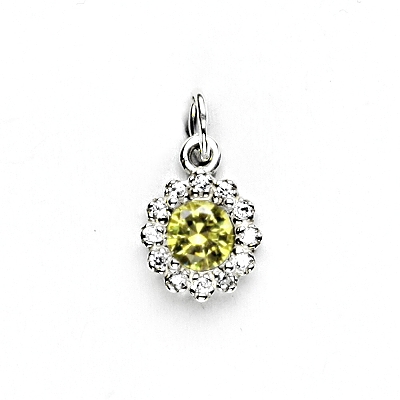 Zlatý přívěsek, žlutý zirkon 5,5 mm a čiré zirkony, bílé i žluté zlato - P 1495