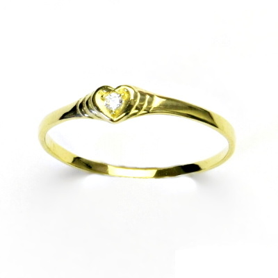 Zlatý prsten s čirým zirkonem, žluté zlato, srdíčko, T 1483