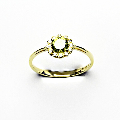 Zlatý prsten, žluté zlato, zirkon olivín, čiré zirkony, T 1495