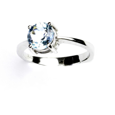 Prstýnek z bílého zlata s přírodním topazem sky o půměru 7 mm. Materiál prstenu je zlato 585/1000. Orientační váha prstenu ve velikosti 55 je 3,38 g.
