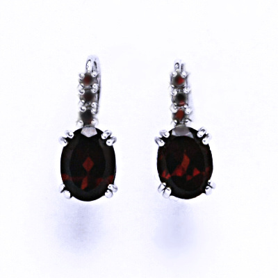 Zlaté náušnice na klasicé patentové zapínání zdobené přírodními kameny granáty .