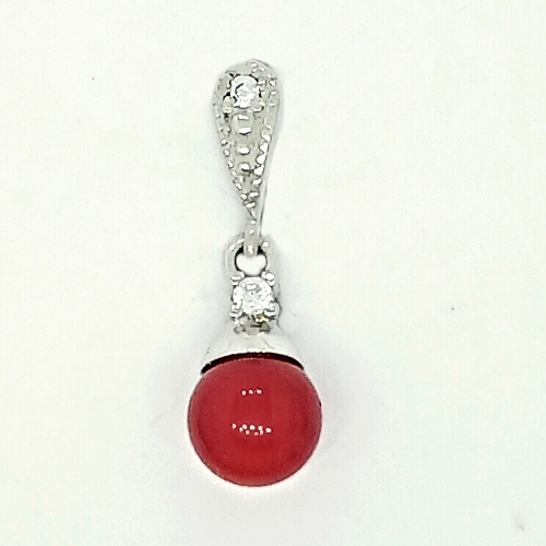 Zlatý přívěšek s přírodním korálem 6,5 mm a čirými zirkony, bílé i žluté zlato - P 1482/14